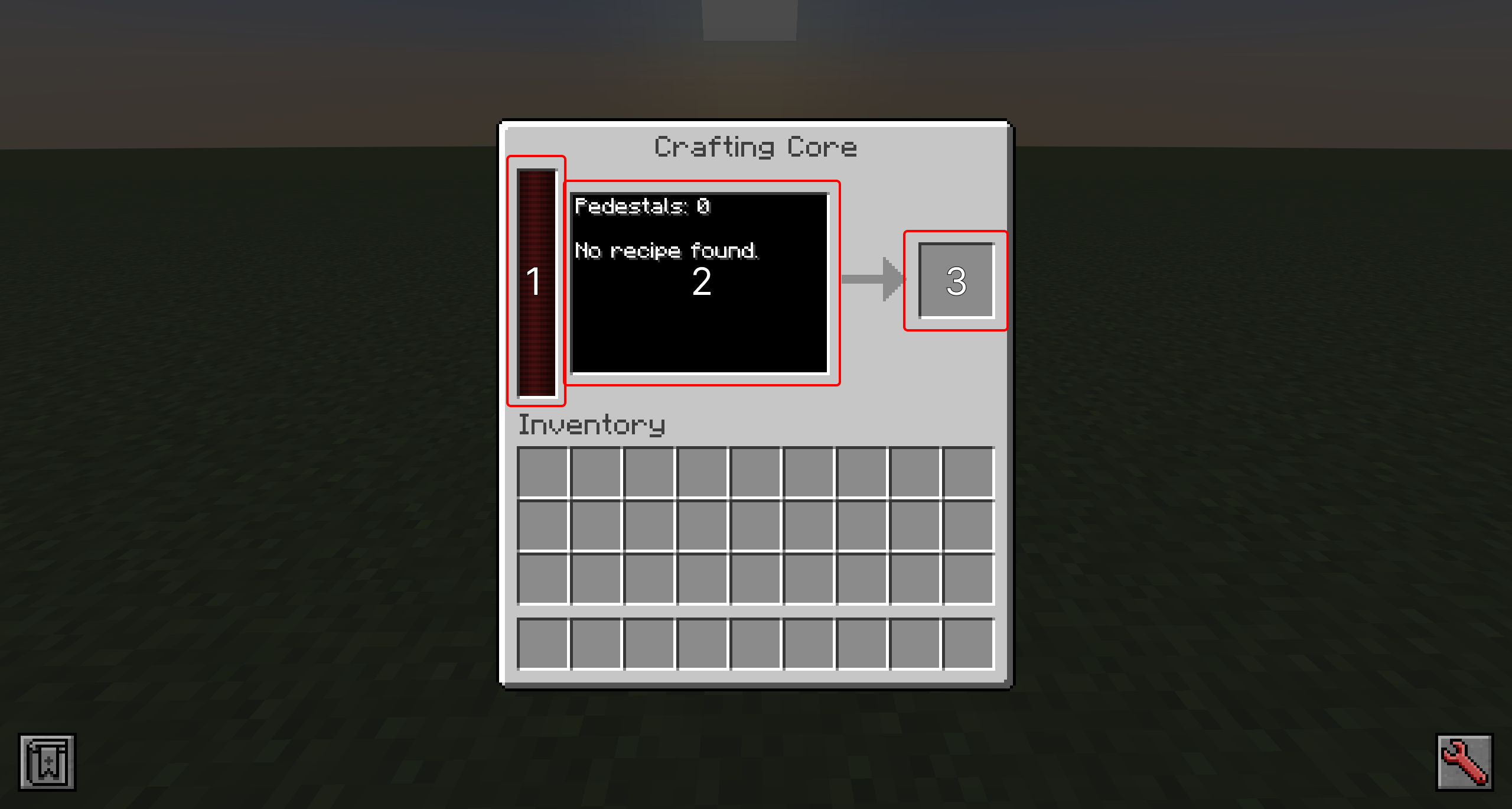 The Crafting Core is one of the key components of the Combination Crafting mechanism. Along with Pedestals, the Crafting Core can be used to craft different items using energy and a combination of up to 49 different items.