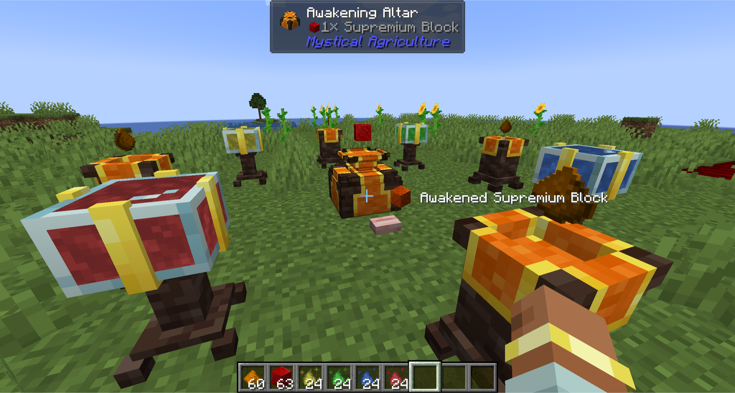 The Awakening Altar placed in the world with the ingredients needed to craft Awakened Supremium.
